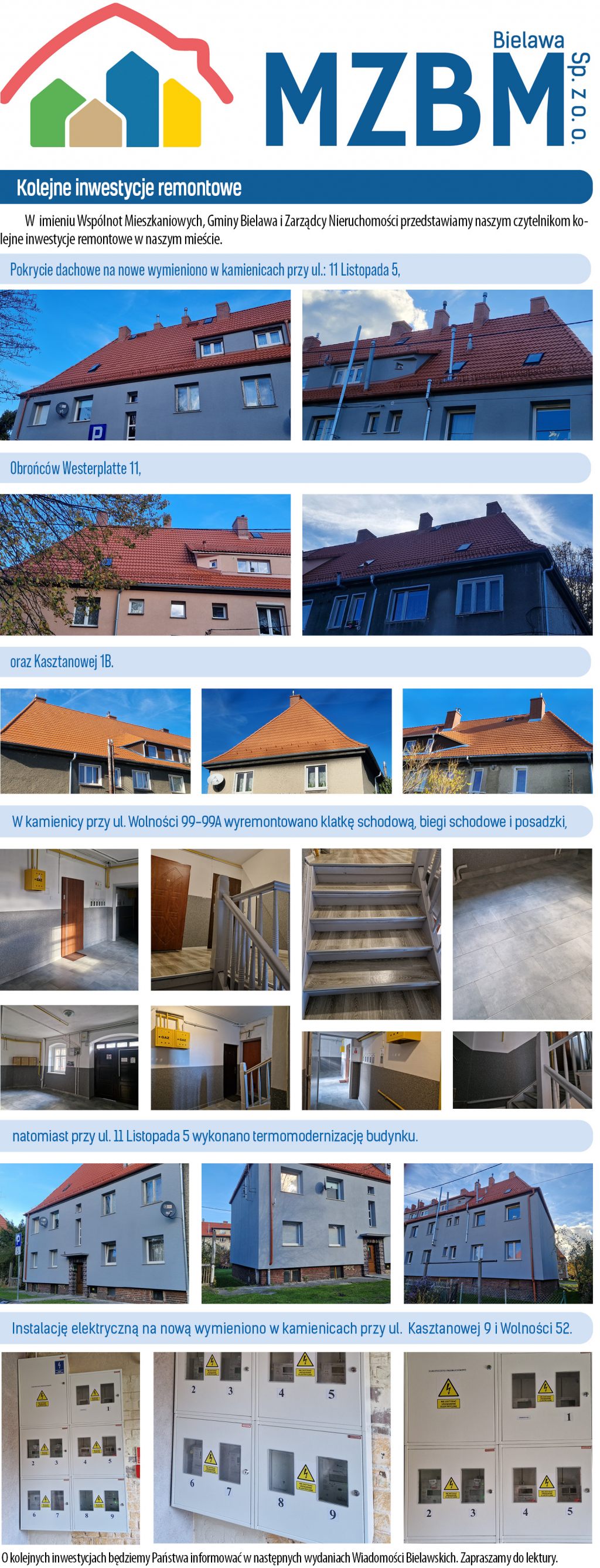 Poniżej prezentujemy Państwu remonty na zasobie zarządzanym przez MZBM.